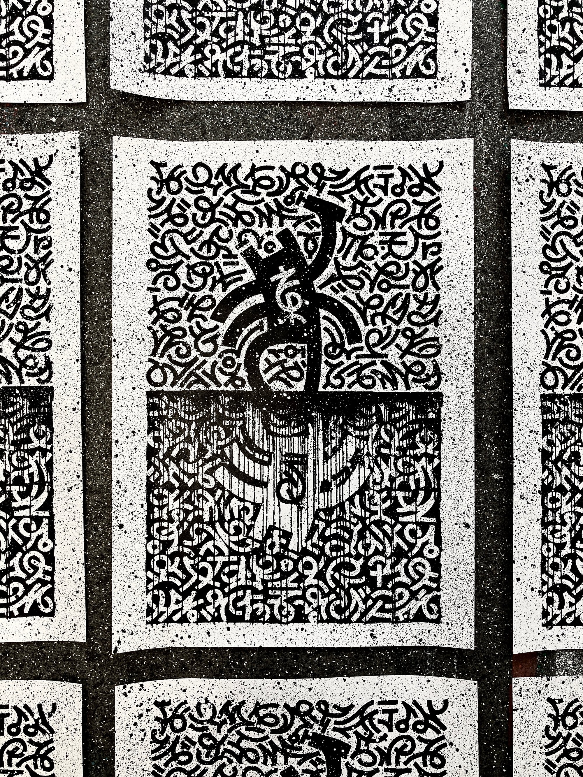 In collaboration with Berlin artist KIDD BLIZZ we have screenprinted and sprinkled this piece of recycled paper by hand and heart